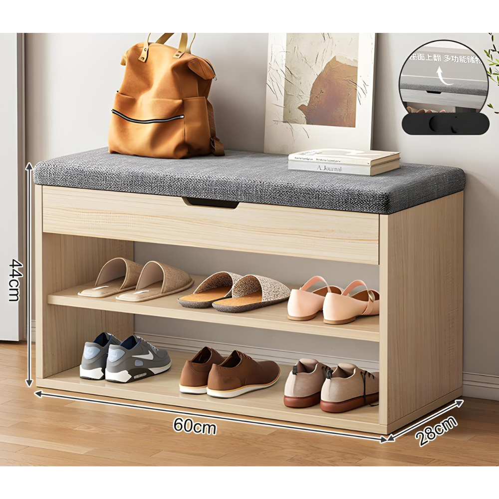 ארון נעליים כולל ספסל ישיבה 60 ס"מ דגם RSM-1012 צבע עץ מבית Rosso italy - יבואן רשמי