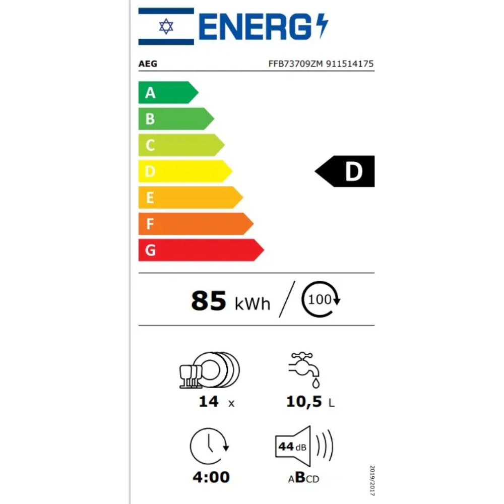 מדיח כלים רחב 14 מערכות כלים דגם FFB73709ZM AEG נירוסטה מוברשת - יבואן רשמי