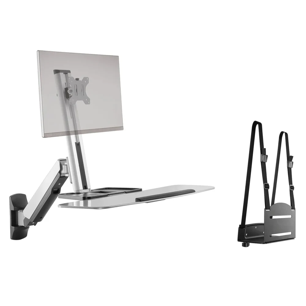 עמדת עבודה הידראולית למסך מחשב, מקלדת ועכבר עם תופסן קיר למחשבים נייחים Lumi Legend / Brateck DWS02-W01 - יבואן רשמי