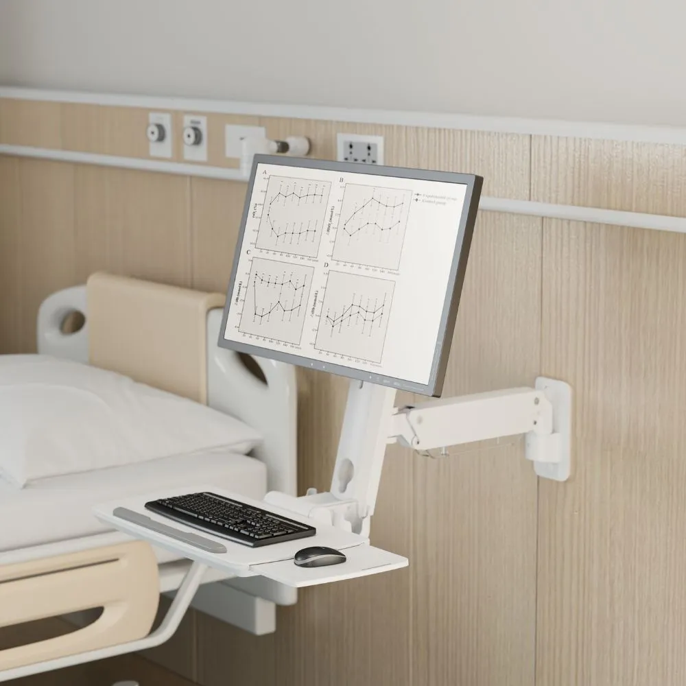 עמדת עבודה רפואית מיועדת לתלייה על קיר למסך מחשב, מקלדת ועכבר Lumi Legend / Brateck MED02-1 - יבואן רשמי