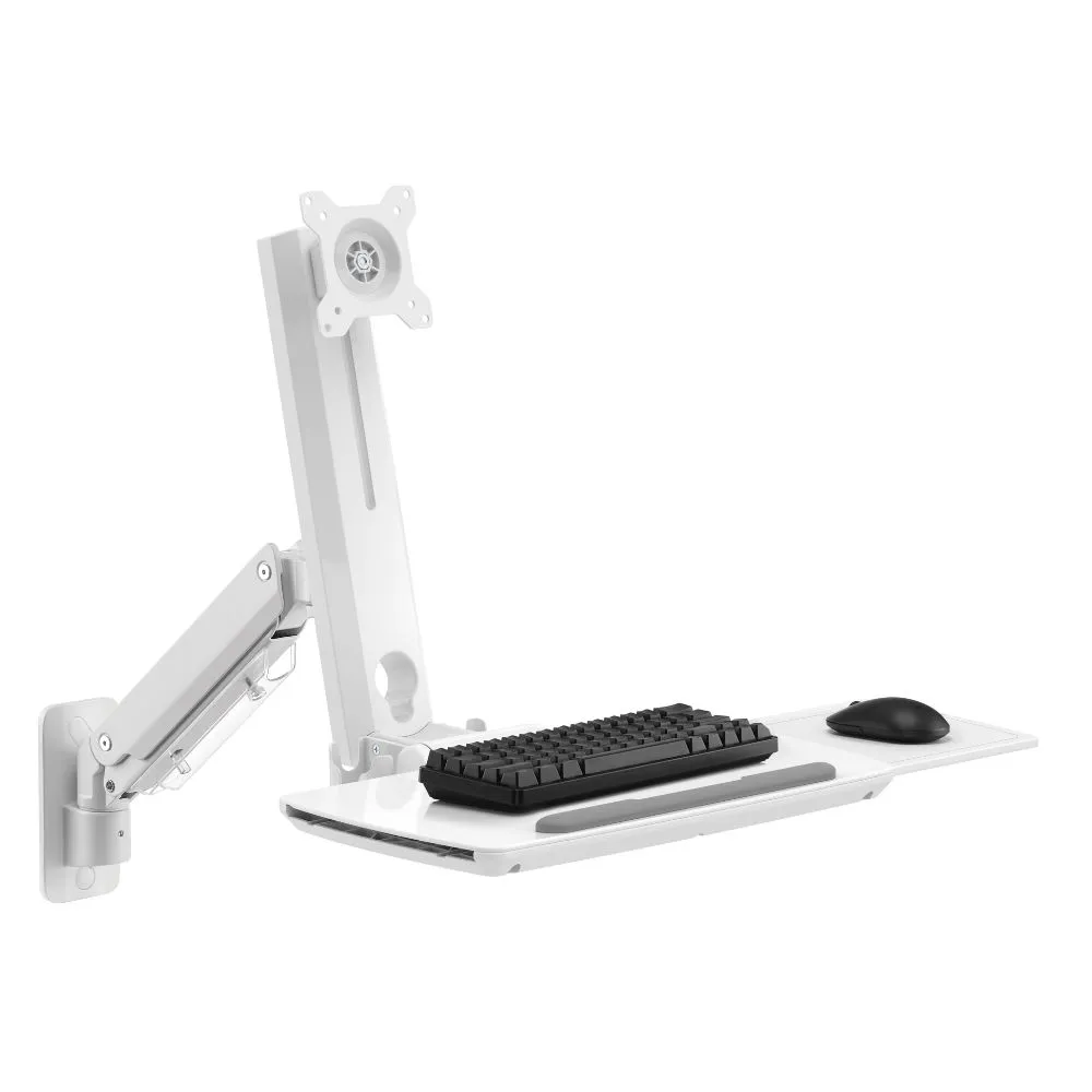 עמדת עבודה מתכווננת לתלייה על הקיר, מתאימה למגוון מסכי מחשב בגדלים 17″ עד 35″.
