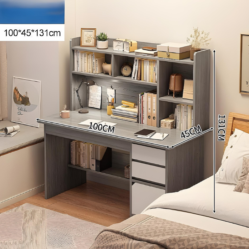 סט ספרייה שולחן מחשב כתיבה רוחב מטר דגם RSM-3023 אפור וכסא מחשב אורטופדי דגם MSH-10-6 שחור ROSSO ITALY - יבואן רשמי
