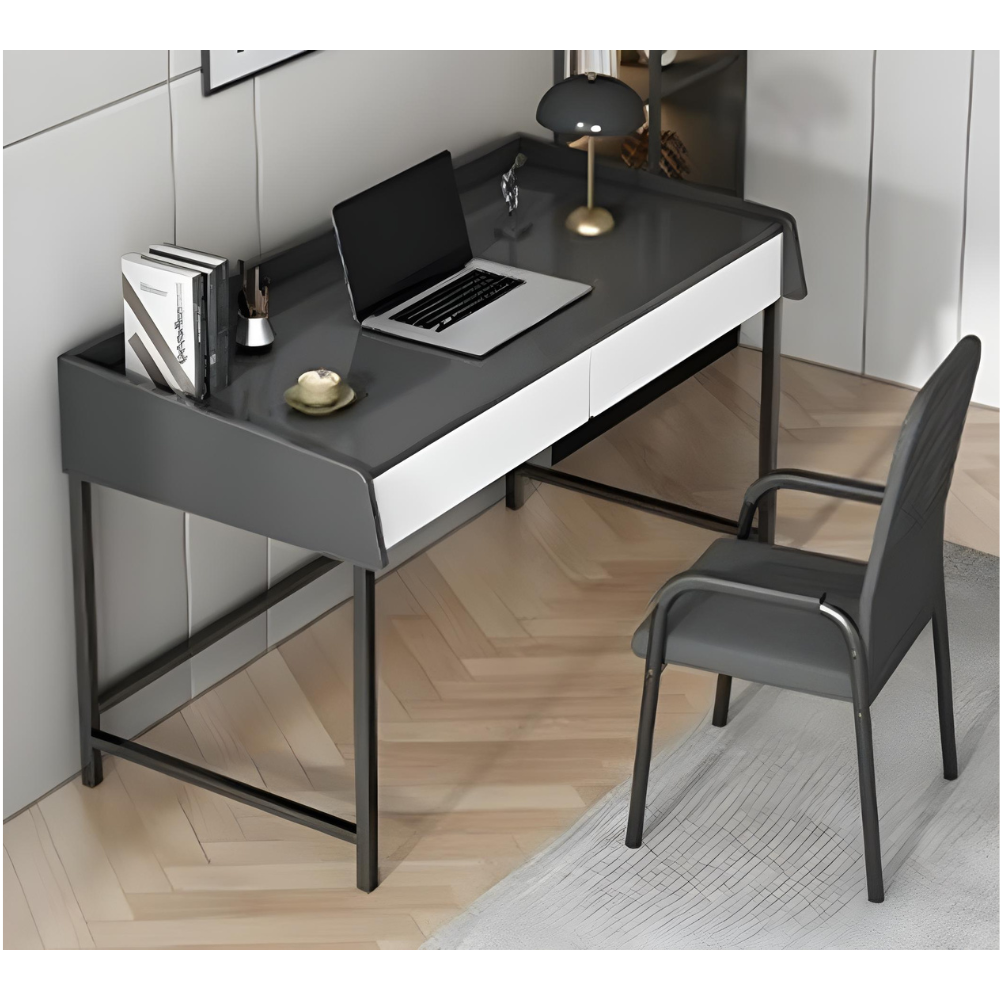 סט שולחן מחשב קונסולה שידת כניסה רוחב 80 ס"מ עם מגירות דגם RSM-2066 מגירות אפורות וכסא מחשב אורטופדי דגם MSH-10-6 שחור ROSSO ITALY - יבואן רשמי