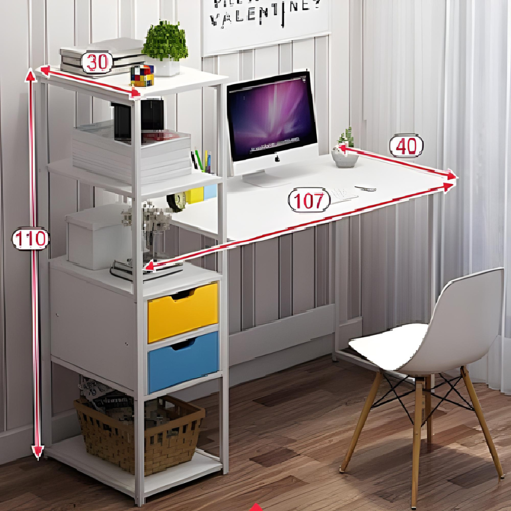 שולחן מחשב ברוחב 105 ס"מ כולל מדפים Rosso Italy RSM-2043 שלדה לבנה בשילוב מגירות צבעוניות - יבואן רשמי