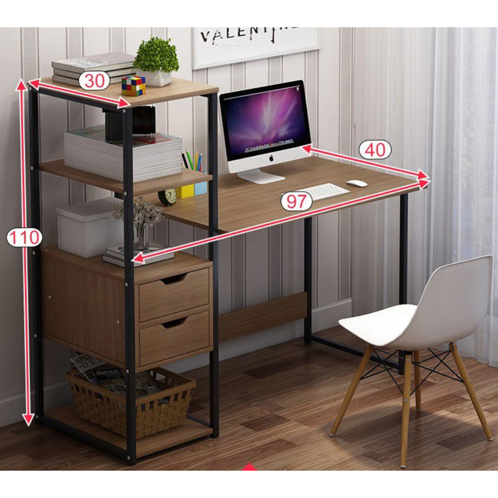 שולחן מחשב ברוחב 95 ס"מ כולל מדפים Rosso Italy RSM-2042 שלדה שחורה בשילוב עץ - יבואן רשמי