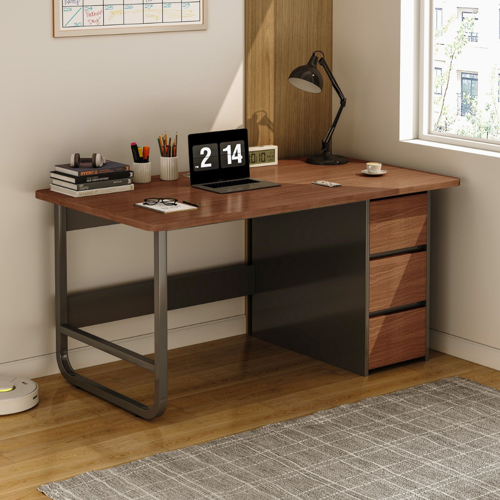 שולחן מחשב כתיבה כולל מגירות רוחב 100 ס"מ Rosso Italy MSR-1142 - צבע עץ כהה שלדה שחורה - יבואן רשמי