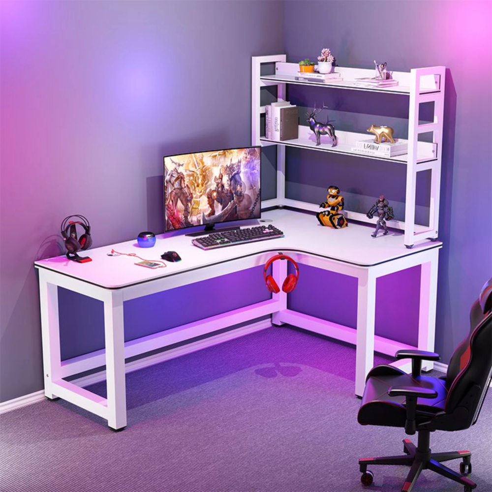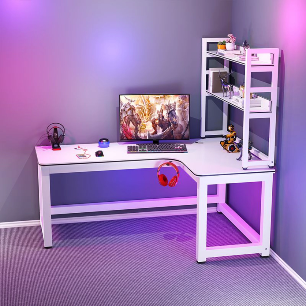 שולחן מחשב פינתי לגיימרים עם מדפים רוחב 120 ס"מ Rosso Italy RSM-2133 - לבן - יבואן רשמי