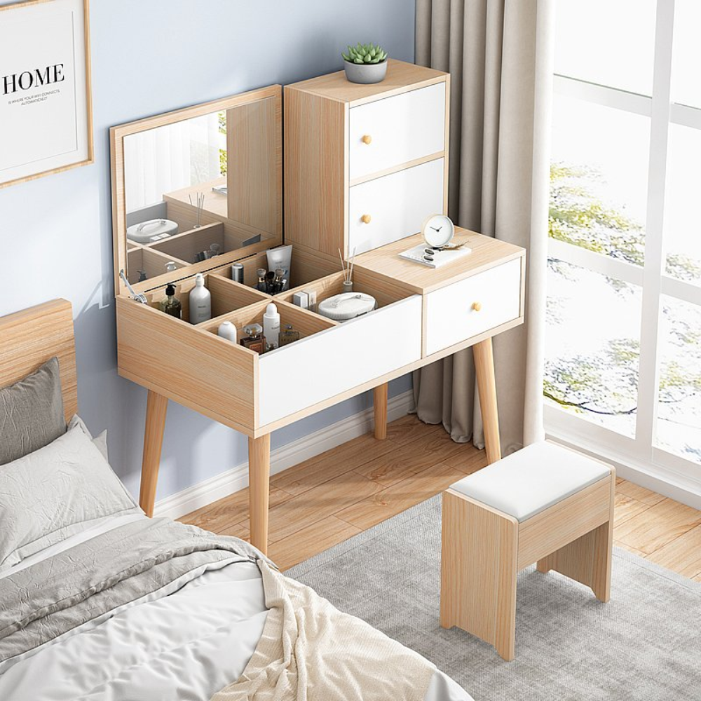סט שידת איפור דגם MSH-10-28 צבע עץ והדום בד יוקרתי דגם RSM-3014 שמנת מבית ROSSO ITALY - יבואן רשמי