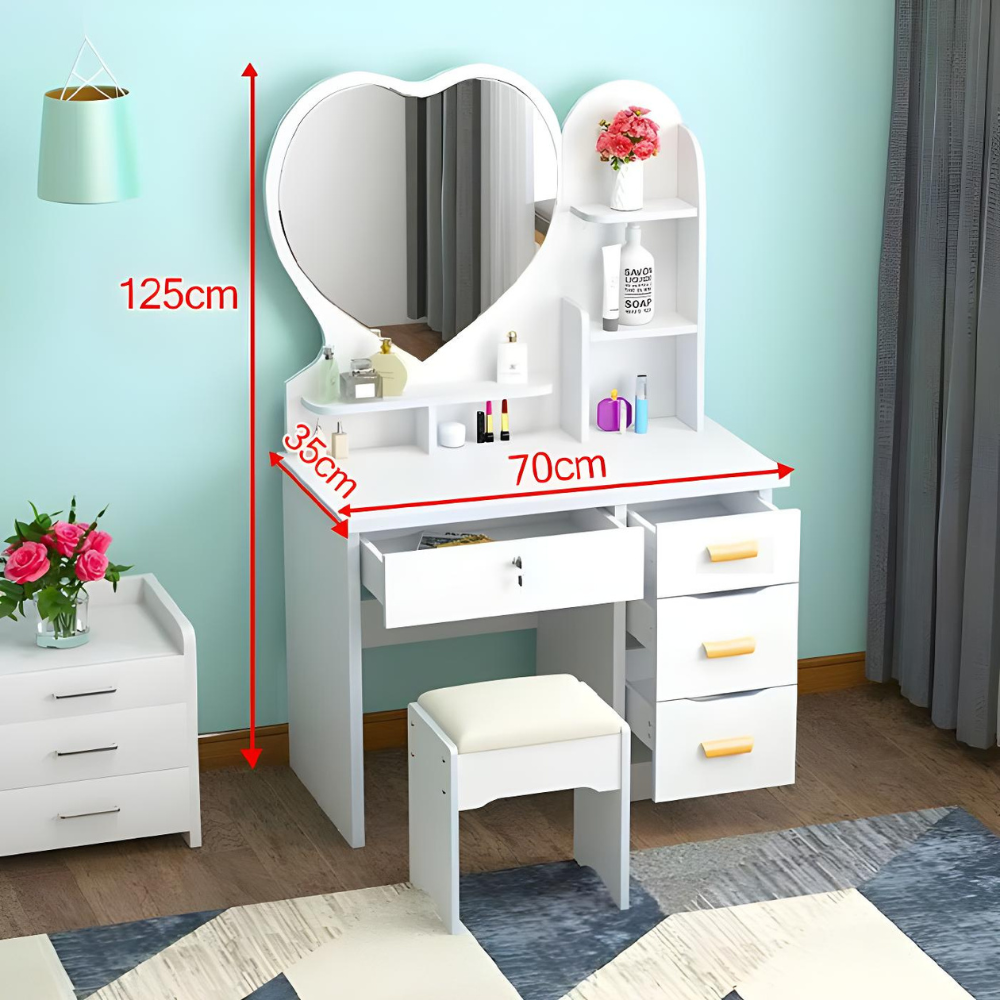 שידת איפור עם מראה בצורת לב וכסא רוחב 70 ס"מ RSM-5012 צבע לבן Rosso italy - יבואן רשמי