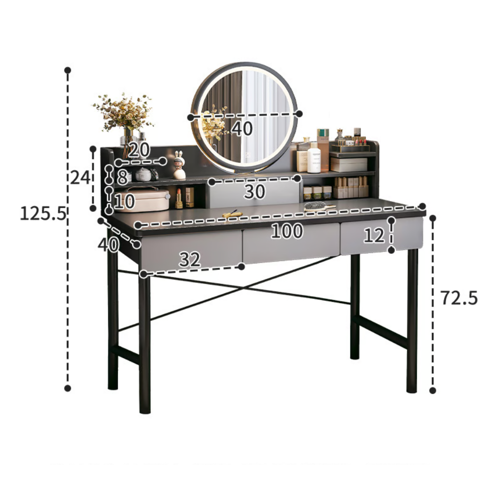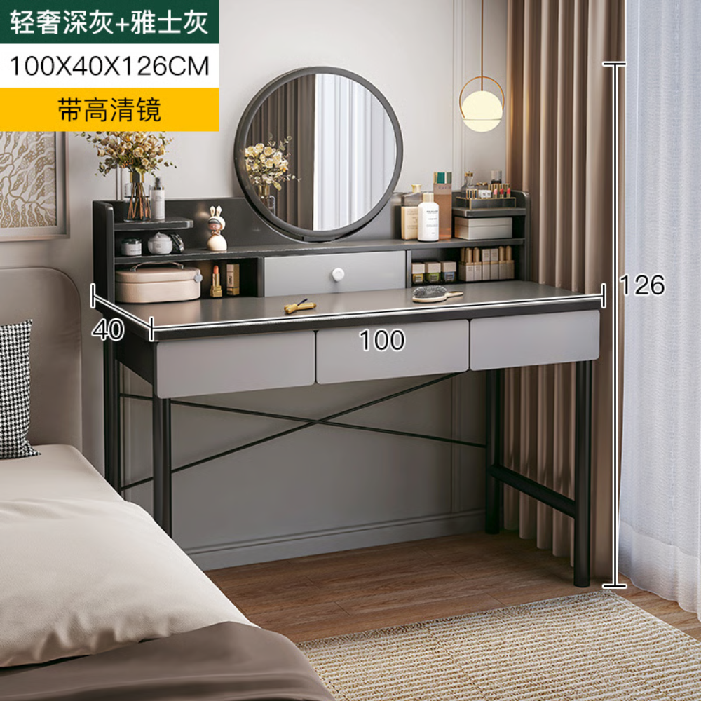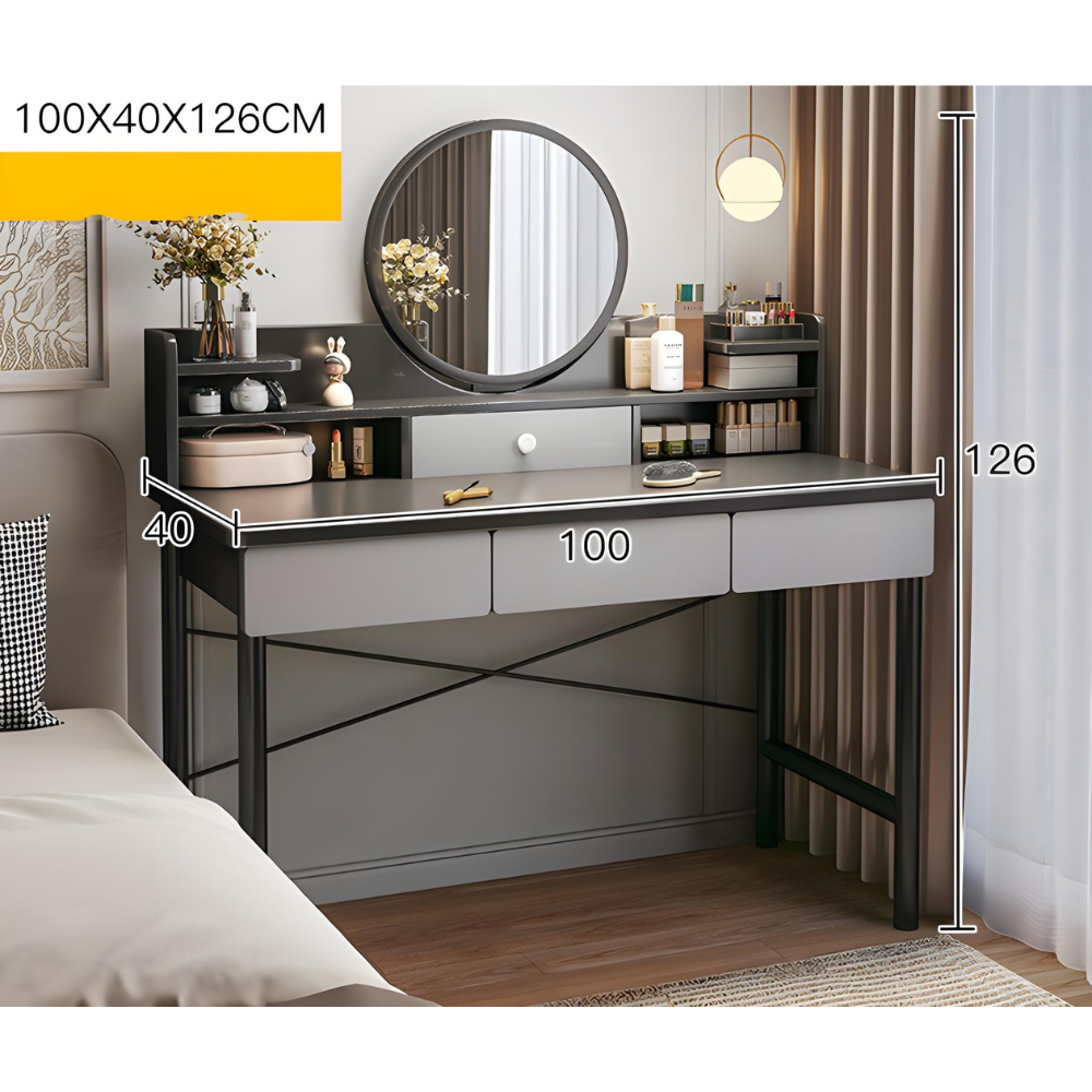 שידת איפור עם מראה רוחב 100 ס"מ דגם RSM-1016 מבית ROSSO ITALY צבע אפור כהה מגירות אפורות - יבואן רשמי