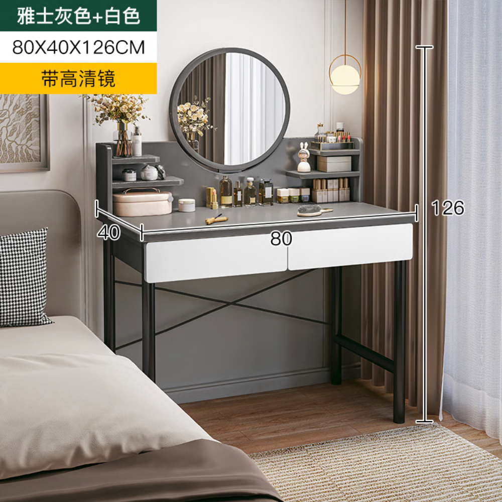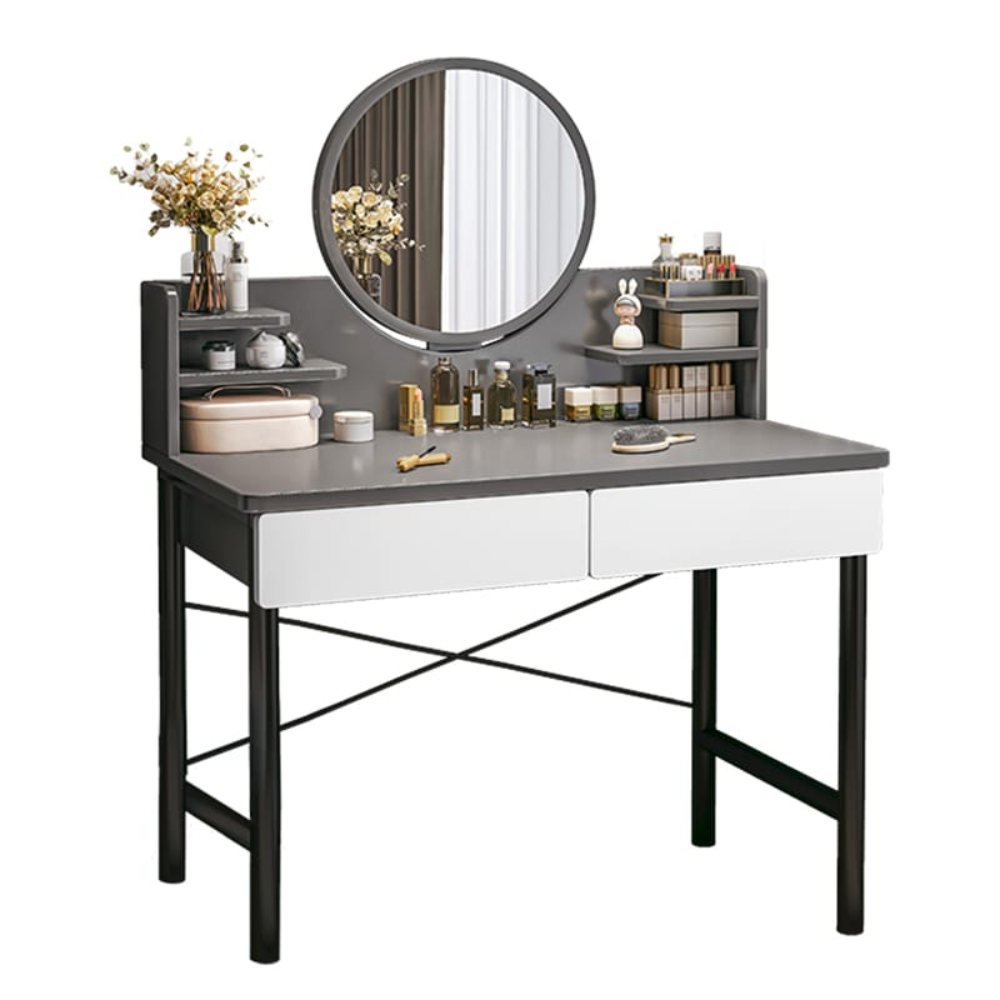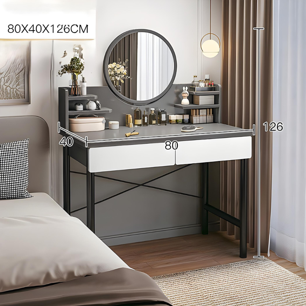 שידת איפור עם מראה רוחב 80 ס"מ דגם RSM-1015 מבית ROSSO ITALY צבע אפור מגירות לבנות - יבואן רשמי