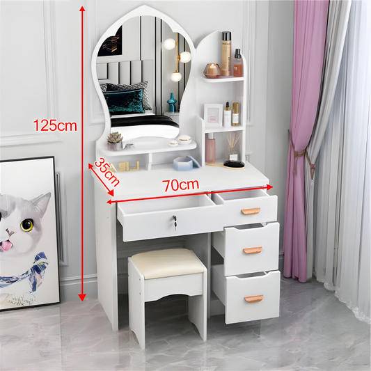 {"type":"root","children":[{"type":"list","listType":"unordered","children":[{"type":"list-item","children":[{"type":"text","value":"יפה אלגנטית ומרווחת"}]},{"type":"list-item","children":[{"type":"text","value":"השידה שמשדרגת כל בית"}]},{"type":"list-item","children":[{"type":"text","value":"עיצוב מהמם ויוקרתי- מראה בצורת לב"}]},{"type":"list-item","children":[{"type":"text","value":"המראה כוללת תאורת לד עם חיבור USB"}]},{"type":"list-item","children":[{"type":"text","value":"השידה כוללת כסא תואם לנוחות מירבית"}]}]}]}