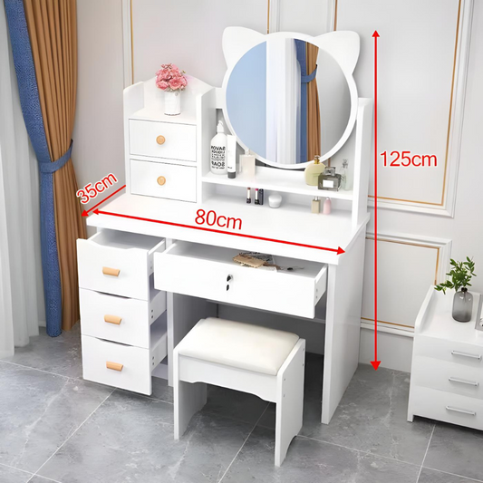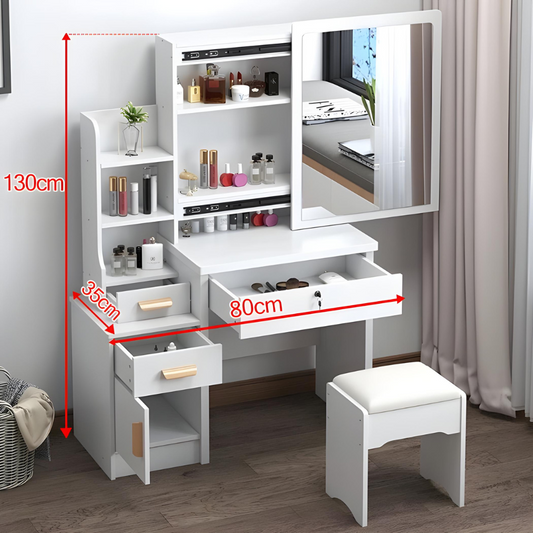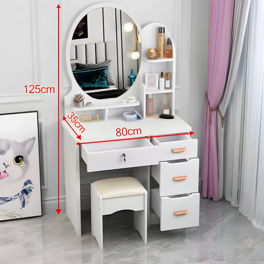 {"type":"root","children":[{"type":"list","listType":"unordered","children":[{"type":"list-item","children":[{"type":"text","value":"שידת איפור עם מראה."}]},{"type":"list-item","children":[{"type":"text","value":"יפה אלגנטית ומרווחת."}]},{"type":"list-item","children":[{"type":"text","value":"השידה כוללת: כסא תואם לנוחות מירבית."}]},{"type":"list-item","children":[{"type":"text","value":"השידה עשויה משבבי עץ בציפוי ובגימור מלמין קל לניקוי."}]},{"type":"list-item","children":[{"type":"text","value":"רוחב: 80 ס\"מ,עומק: 35 ס\"מ, גובה: 130 ס\"מ כולל המראה."}]}]}]}