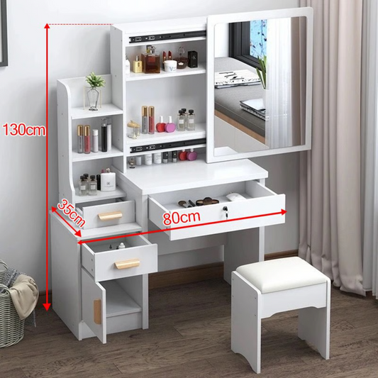 {"type":"root","children":[{"type":"list","listType":"unordered","children":[{"type":"list-item","children":[{"type":"text","value":"עיצוב מהמם ויוקרתי."}]},{"type":"list-item","children":[{"type":"text","value":"יפה אלגנטית ומרווחת."}]},{"type":"list-item","children":[{"type":"text","value":"כוללת 3 מגירות, חלל עם 4 תאי אחסון."}]},{"type":"list-item","children":[{"type":"text","value":"מראה מתקפלת גדולה."}]},{"type":"list-item","children":[{"type":"text","value":"מידות: רוחב 80 ס\"מ, עומק 40 ס\"מ, גובה 116.5 ס\"מ."}]}]}]}