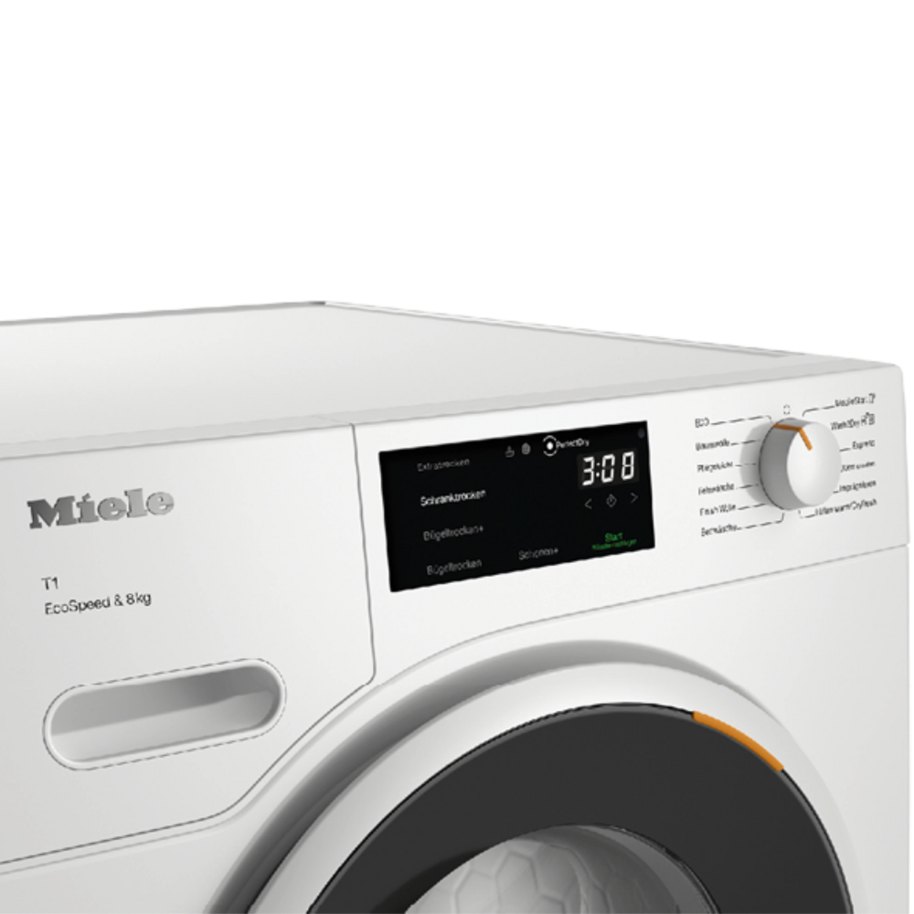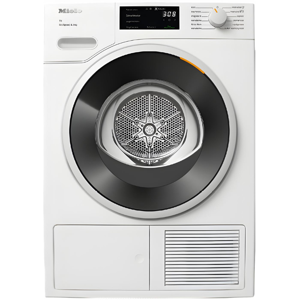 מייבש כביסה פתח חזית דלת שקופה מסגרת שחורה 8 ק"ג Miele TWC640 - צבע לבן - יבואן רשמי