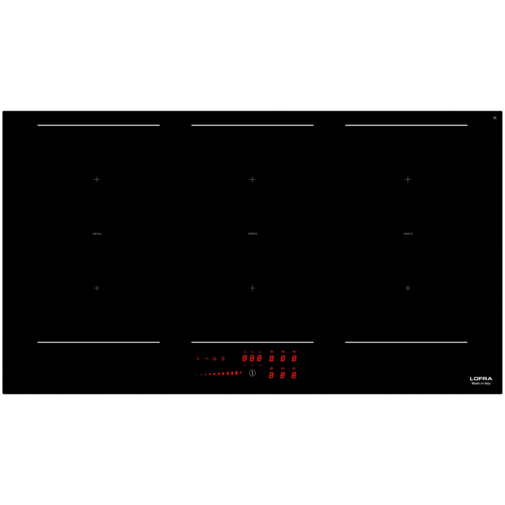כיריים אינדוקציה 90 ס''מ עם 6 מוקדי בישול Lofra HIN906 BRIDGA ZONEתוצרת איטליה - תלת פאזי צבע שחור אחריות ע"י - יבואן הרשמי