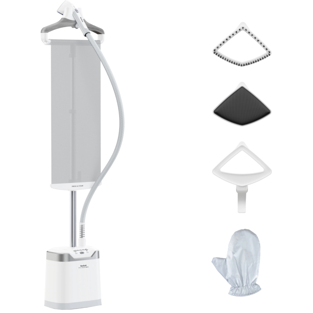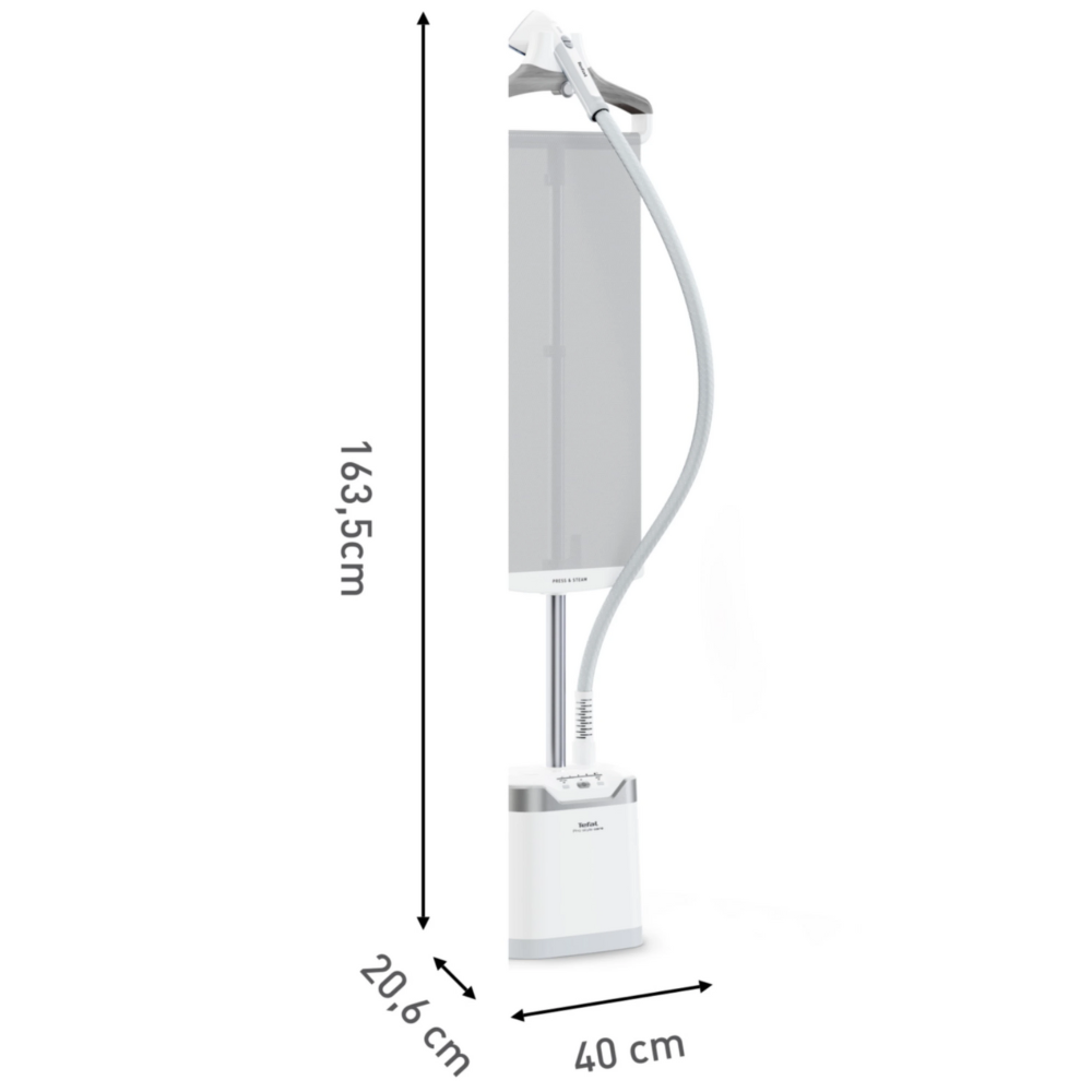 מגהץ קיטור אנכי מבית המותג הצרפתי Tefal, מתחמם במהירות ומתאים את עצמו לסוג הבד לקבלת תוצאות מעולות.