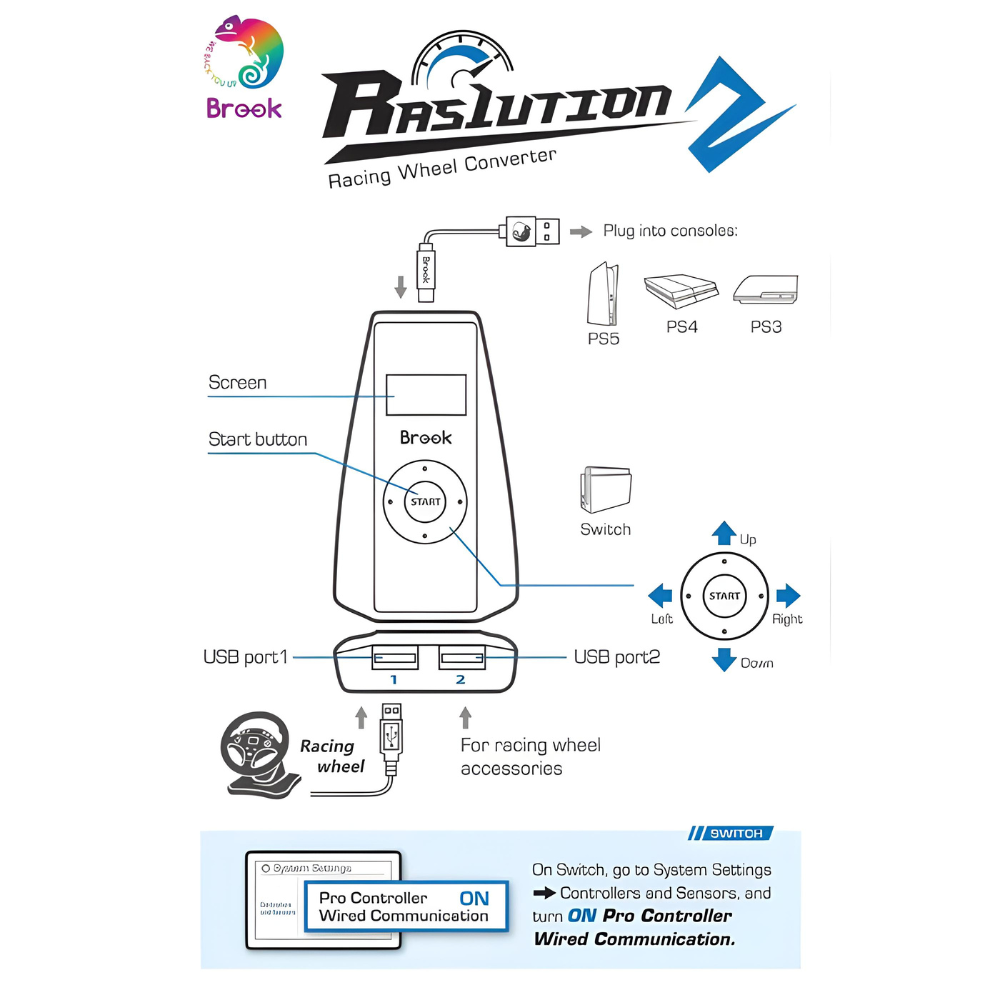 מתאם להגאים, דוושות וידיות הילוכים לפלייסטיישן ונינטנדו סוויץ Brook Ras1ution 2 - יבואן רשמי