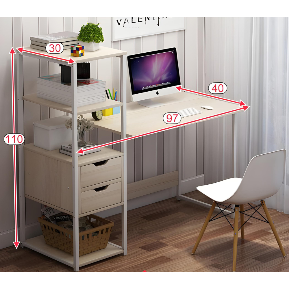 שולחן מחשב ברוחב 95 ס"מ כולל מדפים Rosso Italy RSM-2042 שלדה לבנה בשילוב עץ - יבואן רשמי